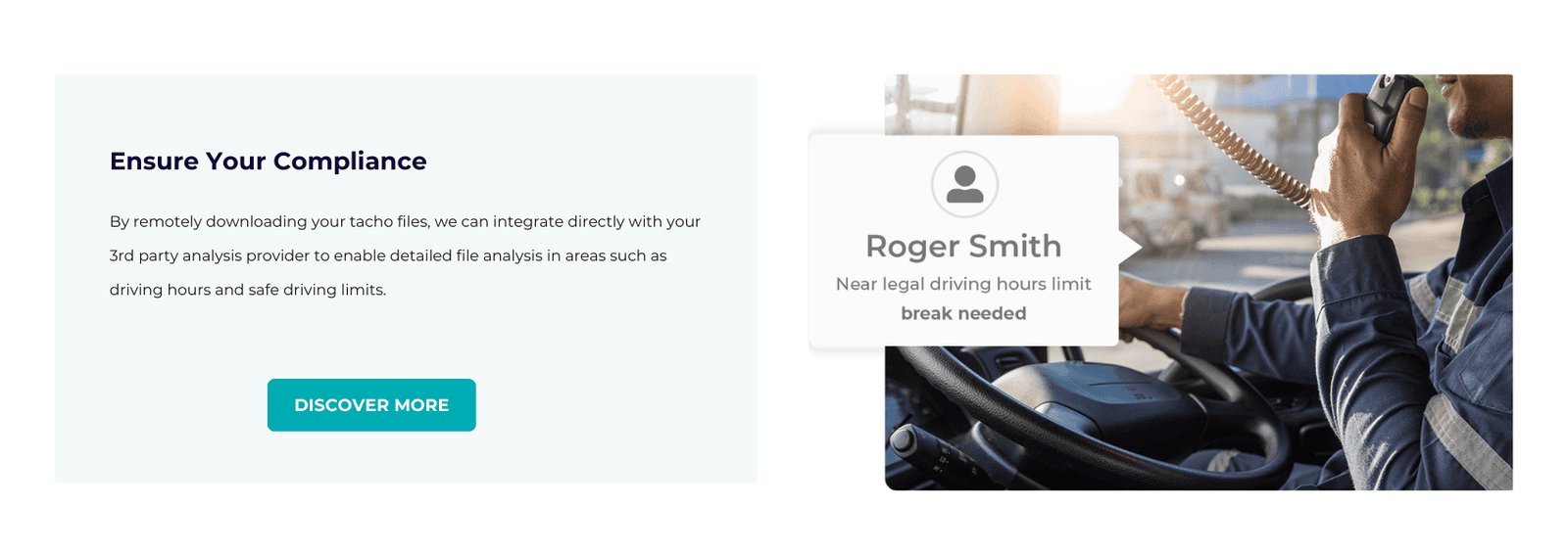 Compliance made simple: Remotely download both vehicle and driver tachograph files to ensure compliance, reduce downtime and remove the requirement for manual file collection.
